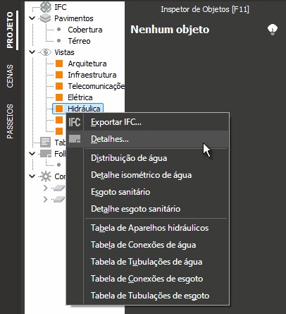 - Para criar as tabelas de quantidades e legendas de Hidráulica: